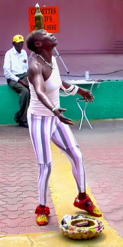 Street entertainer with extraordinary balancing skills